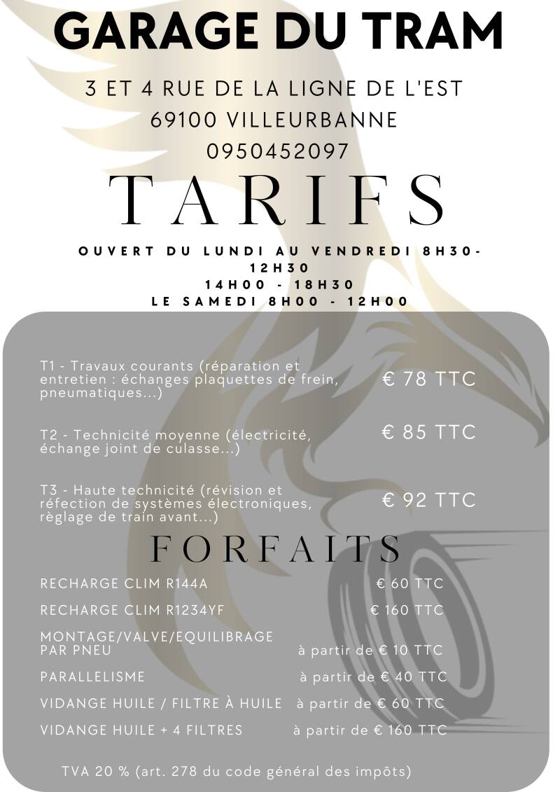| Forfait dépose/pose/Equilibrage sans achat de pneu | 10€ par pneu |